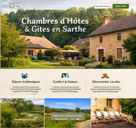 Implantée au cœur de la Sarthe, notre agence accompagne les acteurs du tourisme local dans la création et le développement de leur présence en ligne. Spécialisés dans la conception de sites internet dédiés aux chambres d’hôtes, gîtes, hébergements touristiques et activités de découverte, nous mettons en valeur les territoires, les lieux et les expériences qui font la richesse sarthoise.